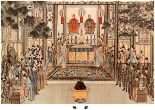 祭祀先祖,是春节期间一项隆重的民俗活动。除夕到来之前,家家户户都要把家谱、祖先像、牌位等供于家中上厅,安放供桌,摆好香炉、供品。 祭祖的同时,有的地方也祭祀天神、土地神,还有的地方还叩拜玉皇大帝(中国民间信仰中的最高之神)、王母娘娘(玉皇大帝的妻子)。